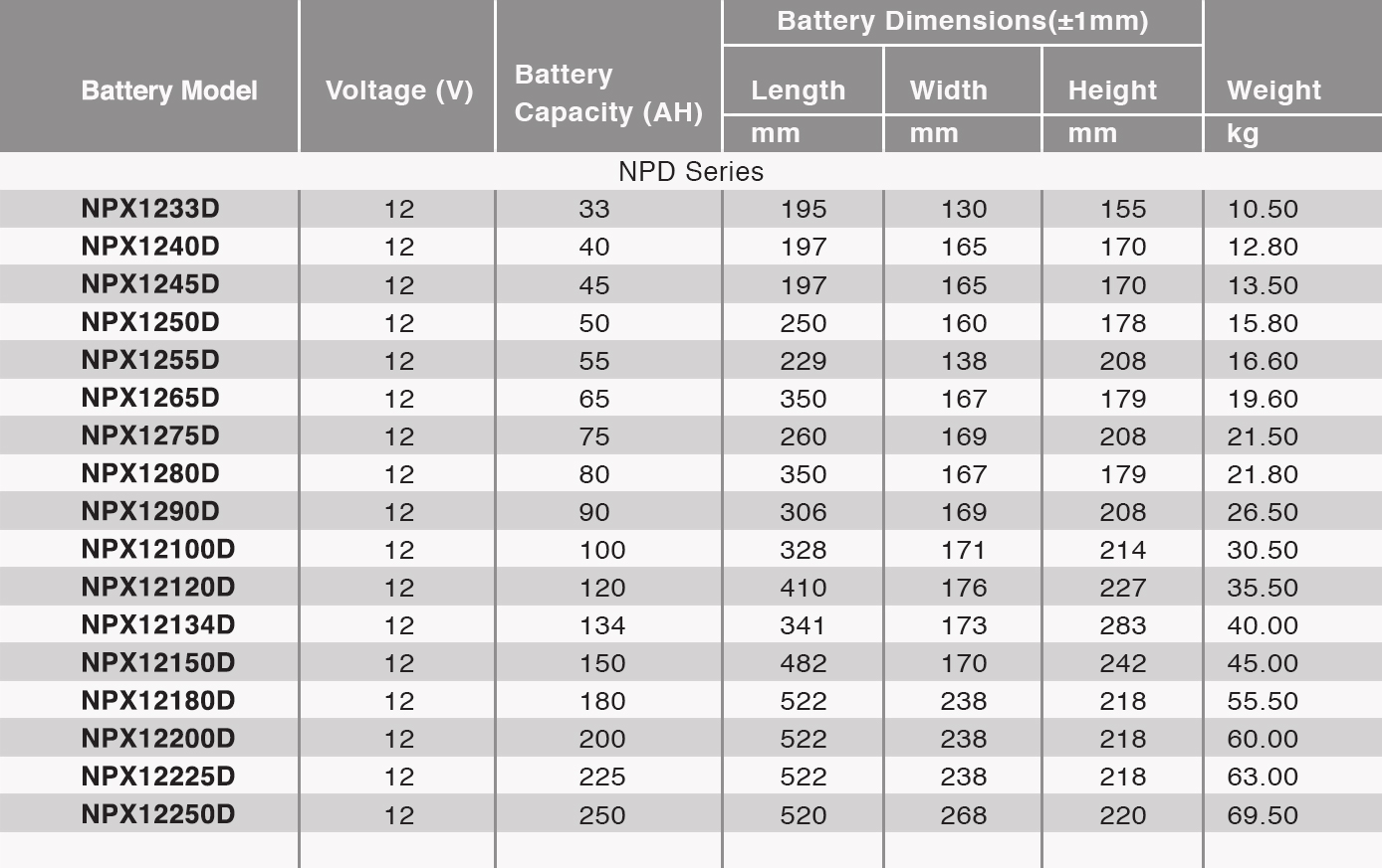 - Low self-discharge and good recovery from deep discharge.